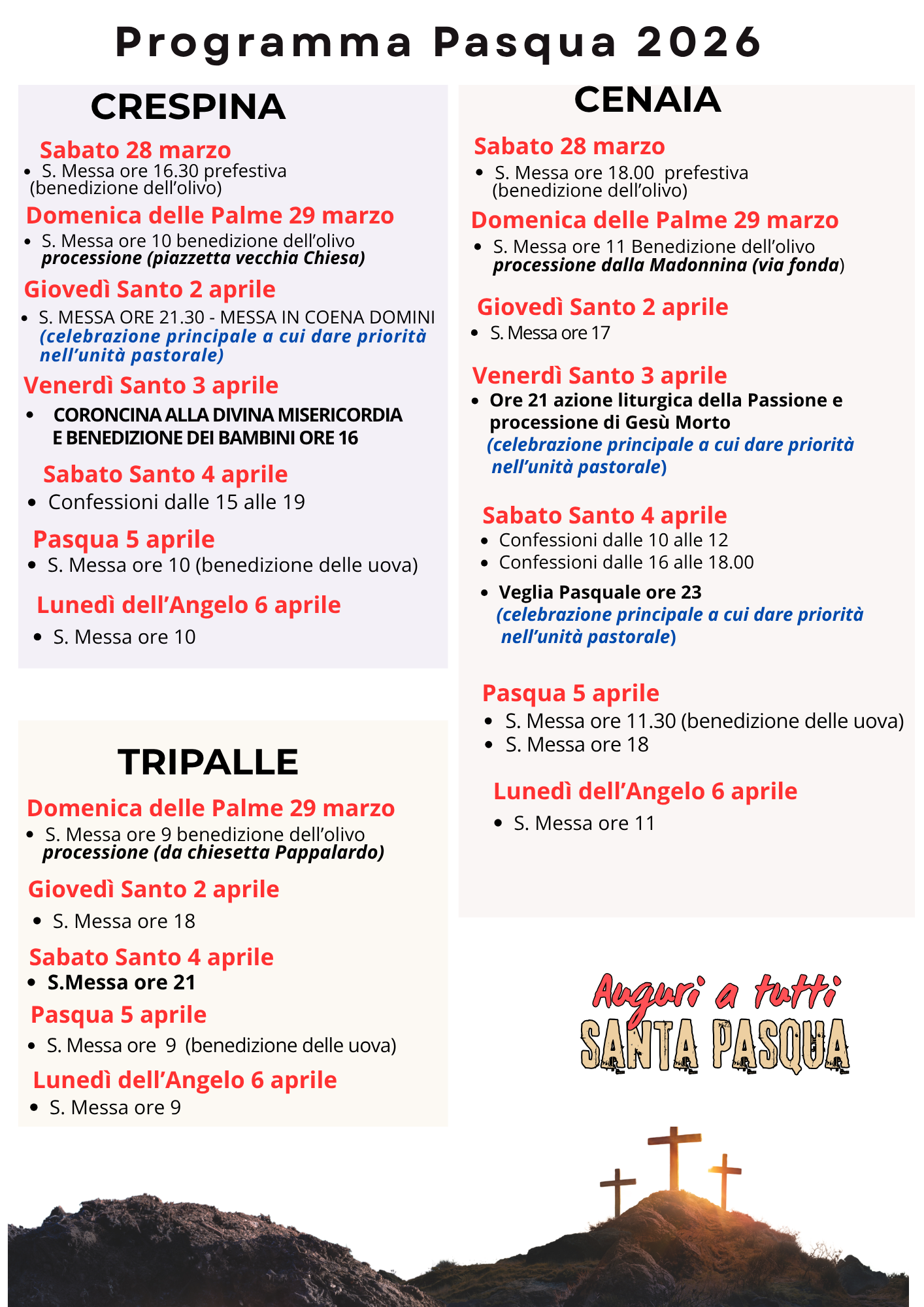 PROGRAMMA PASQUA 2026 - UNITA' PASTORALE